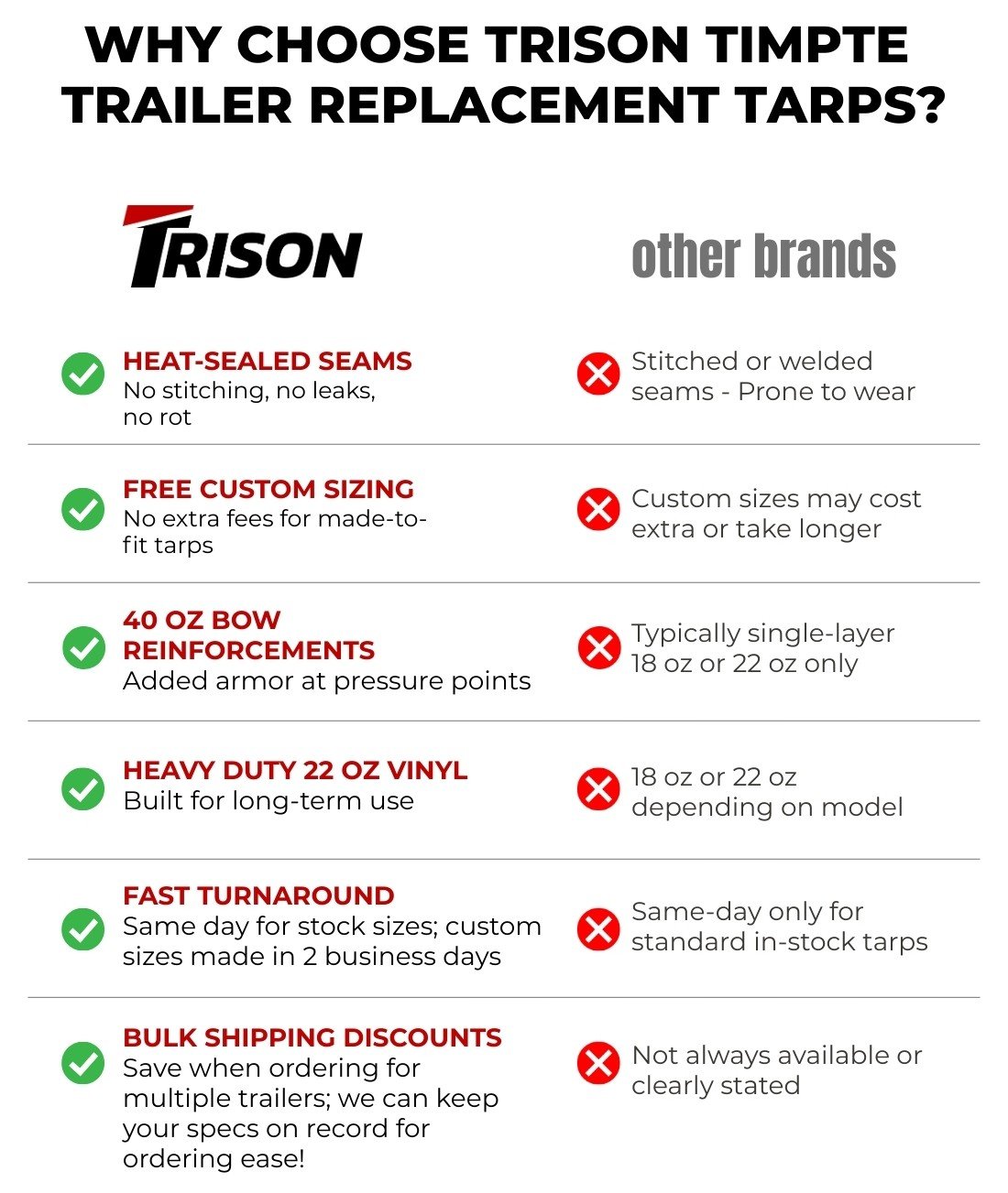 Trison tarps are tax-free for customers located outside of Texas. If you’re in Texas and qualify for tax exemption, please submit your tax exemption certificate by email before placing your order. This helps us ensure your purchase is processed correctly without sales tax applied.