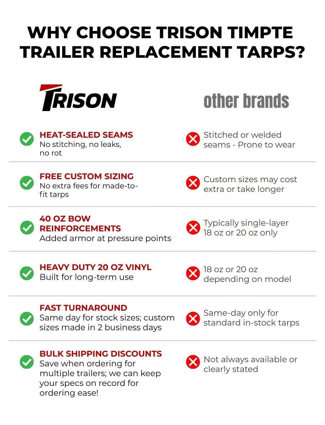 41′ 2″ X 123″ Replacement Tarp For Timpte Trailer Models 2009 And Up