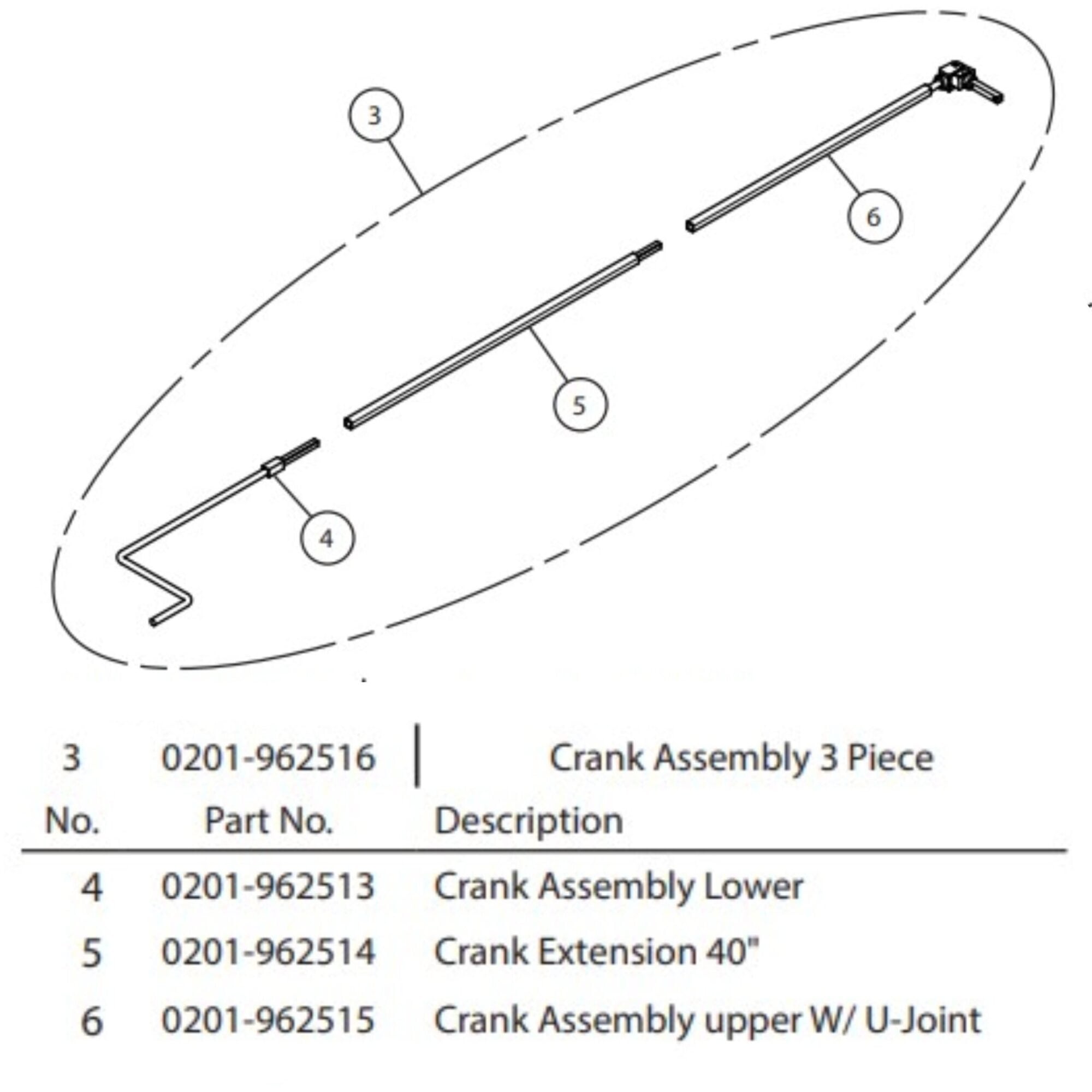 Aero 0201-962516 Crank Assembly for Roll-up Curtain, 3 Piece for Conestoga System.