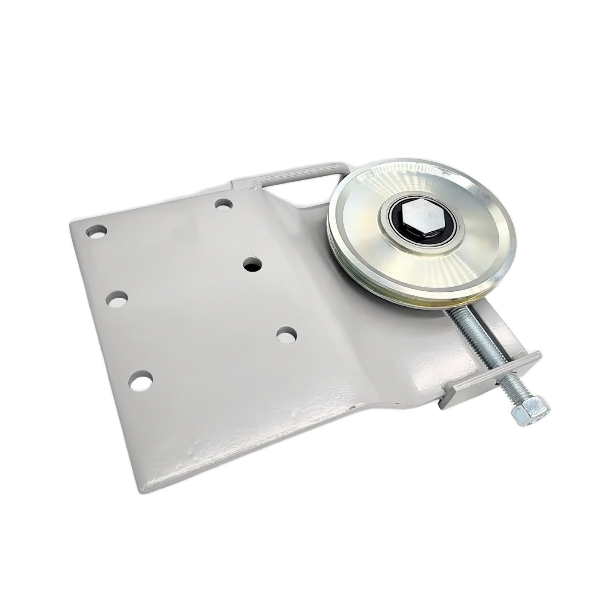 Cramaro 107773 OEM right-hand rear bracket assembly with 5″ pulley for Cramaro Slide-N-Go™ (SNG) tarp systems. Designed to support cable routing and smooth system operation.